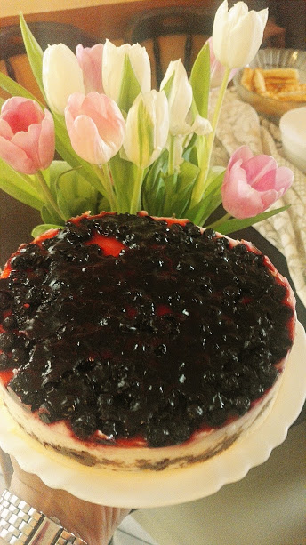 Tortazselé helyett, (mivel az 93%-ban cukor) én a natur zselatinhoz tettem egy kis walden farms epres szirupot, de ezt bármilyen cukormentes szörppel vagy gyümölcslével helyetesíthetjük. A megszilárdult joghurtos rétegre én áfonyát szórtam és leöntöttem a rózsaszín zselatinnal. Majd egész éjszakára betettem a hűtőbe.